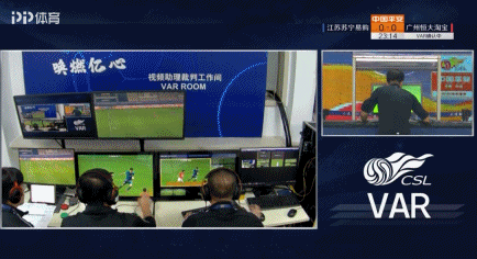 第21分钟,谢鹏飞中场带球长驱直入右脚送出手术刀般直塞球,特谢拉机警地插入禁区脚后跟横敲,埃德尔拍马赶到与严鼎皓发生身体接触后倒在禁区内,主裁判指向点球点,双方球员围着主裁判理论,慢镜头给的是苏宁发动进攻前吉翔存在手球嫌疑的镜头,主裁判跑向场边观看VAR,经过VAR视频回放后,主裁判进行改判,吉翔手球在先,取消点球。