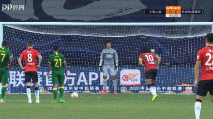 第39分钟,上港获得前场距离球门30米定位球机会,胡尔克主罚,皮球打在李可身上弹了一下,郭全博将球控制,慢镜回放显示,皮球打在了李可的右手臂上,主裁判张雷到场边观看视频回放之后,指向点球点,判定这是一粒点球。3分钟后,胡尔克站上12码点,胡尔克左脚送出贴地斩,郭全博判断对了方向未能碰到皮球,皮球应声入网,上港1-0领先国安。