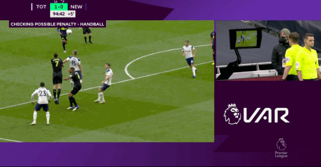 第93分钟,卡罗尔禁区内头球打在戴尔张开的手臂上,VAR先是看卡罗尔是否越位,在确认没有越位后判罚了点球。威尔逊主罚命中,这个进球是第97分钟,穆里尼奥不等比赛结束直接回更衣室。