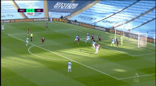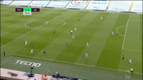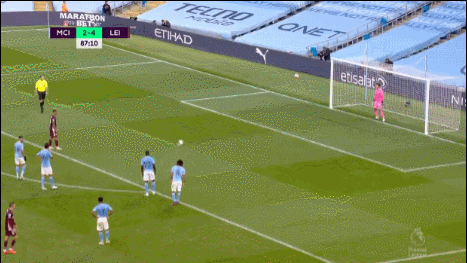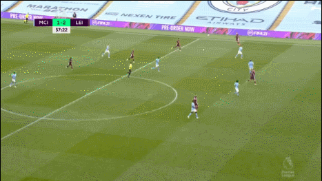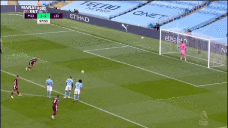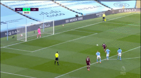 1分钟后,巴恩斯中前场左侧直传,瓦尔迪禁区左侧拿球被加西亚放倒,当值主裁再度判罚点球,随后瓦尔迪一蹴而就上演帽子戏法,莱斯特城扩大比分,3-1!第64分钟,门迪左路起球传中,小德拉普头球顶高。随后,福登被费兰-托雷斯换下。第68分钟,德布劳内右路精准传中,斯特林后点头球攻门高出横梁。