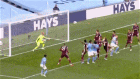 第13分钟,罗德里禁区外远射高出横梁。第18分钟,马赫雷斯与斯特林进行撞墙式配合,斯特林禁区右侧插上右脚抽射,角度太正被小舒梅切尔轻松没收。第25分钟,加西亚前场中路持球推进被绊倒,曼城获得任意球机会。德布劳内主罚将球开到禁区中路,费尔南迪尼奥头球攻门被小舒梅切尔得到。
