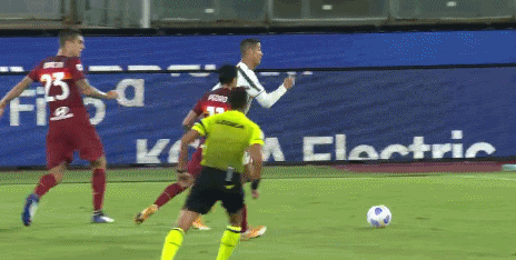 逆境看C罗,这绝对不是一句空话。客场作战的尤文比分两度落后,而且还因为拉比奥的下场10打11,但是最终凭借着C罗的两个进球追平罗马,艰难的获得了一个积分。C罗打入的第二个进球格外精彩,又是标志性的扣篮头球,35岁的C罗就是足球场上的“飞人”。