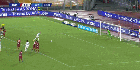 比赛开场后,客场作战的尤文不占优势,罗马队攻势更多,同时威胁也更大,而在比赛第31分钟,罗马也凭借着韦勒图的点球1-0领先了尤文。对于斑马军来说,尽快扳平比分对于球队的信心影响是巨大的,而在这时C罗站了出来。比赛第43分钟,C罗突破到禁区内左侧,一脚传球打在佩莱格里尼的手上,主裁判罚点球,C罗也亲自主罚命中,帮助尤文扳平了比分。C罗的这个进球不仅扳平了比分,也平息了队友焦急的心态。