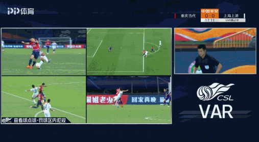 第15分钟,石柯头球解围失误顶向后场,张卫回防过程中在大禁区线附近踢倒了冯劲,主裁判李海新先是果断指向12码点,经过与视频助理裁判沟通后,主裁判跑到场边观看了视频回放,再回场上,先是示意这是禁区外的定位球,随后向犯规球员张卫出示了红牌。4分钟后,大摩托操刀主罚,一脚射门打在人墙上,没能形成威胁。