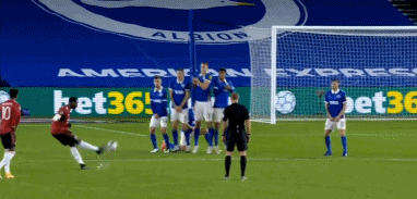 第79分钟,维尔特曼绊倒突破的拉什福德领到黄牌。曼联获得禁区前沿偏左25码处的任意球,博格巴主罚右脚弧线球射门,球打在左立柱上弹入网内,曼联3-0领先。