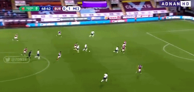第65分钟, 弧顶外斯特林没拿好,费兰-托雷斯得球冷静推远端得手!曼城3-0伯恩利!