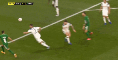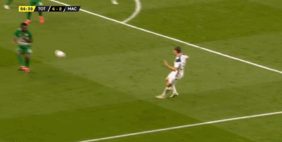 第74分钟,热刺反击,贝尔温禁区左肋妙传,凯恩插上直接面对门将6码处挑射破门,热刺6-2领先海法马卡比。