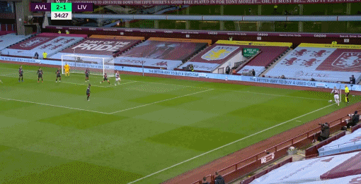 第44分钟,格里利什左路拿球后杀入禁区,面对安德里安起脚射门,未能打上力量。最终半场比赛结束,利物浦在客场以1-4的比分落后。