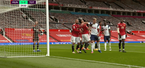 ——别说曼联球员是不是还沉浸在领先的快乐里,我都还在思考着这个开场点球会对比赛带来怎样的影响,热刺就秒平了比分。看,两大中卫禁区内把双龙戏珠玩成海豹顶球,马奎尔一个熊抱按倒胖肖,拜利一脸懵逼坐山观虎,恩东贝莱上来就是一脚抡圆。