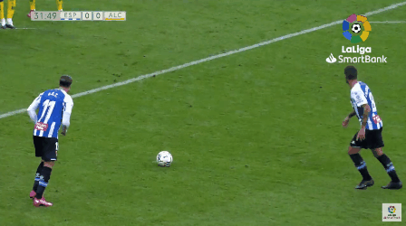 第39分钟,武磊又险些为球队制造得分机会。这一次,大卫-洛佩斯前场右路高空球斜传到禁区左侧,武磊头球顶回到门前,德托马斯准备抢点攻门时被对方后卫推倒,但是主裁判并没有在第一时间判罚点球,也没有在随后的征求VAR的意见。当半场战罢,武磊被梅拉梅德替换下场,而他的上一粒进球还要追溯到联赛首轮。