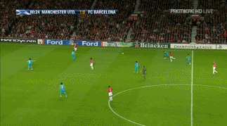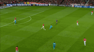 正如训练场上的演练一样,曼联让出了球权,巴萨开始在曼联的防线前进行探索。