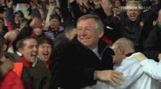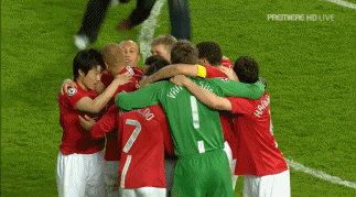 球员们在场上肆意庆祝,年轻的C罗跪倒在地,他距离自己梦想只差最后一场比赛,而在替补席上,弗格森从球迷的欢呼中走向阶梯,和奎罗斯、麦克-费兰也抱在了一起。