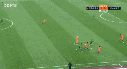 北京时间10月17日15点30分,中超第二阶段第一轮的比赛打响,争冠组的一场焦点战,山东鲁能泰山在苏州市体育中心对阵北京中赫国安。第37分钟,蒿俊闵前场突然上抢完成抢断后传给佩莱,后者再回传给格德斯,巴西人拿球不作调整直接送出直塞,插入到禁区右侧的蒿俊闵面对门将带球调整后斜塞后点,无人防守的金敬道倒地铲射空门得手,鲁能2-0领先。
