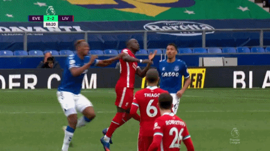 北京时间10月17日晚19时30分,2020-21赛季英超联赛第5轮一场焦点大战拉开帷幕,英超领头羊埃弗顿坐镇主场古迪逊公园球场迎战利物浦。上半场比赛,第2分钟利物浦反客为主,马内进球打破僵局,第10分钟范戴克伤退,第18分钟,基恩通过角球机会将比分扳平。易边再战,萨拉赫在第71分钟时打入一球将再次让利物浦取得领先,第80分钟,勒温将比分再次扳平,理查利森在第88分钟飞铲蒂亚戈被红牌罚下。伤停补时第2分钟,亨德森进球被裁判吹掉。最终全场比赛结束,利物浦在客场以2-2的比分与埃弗顿握手言和。