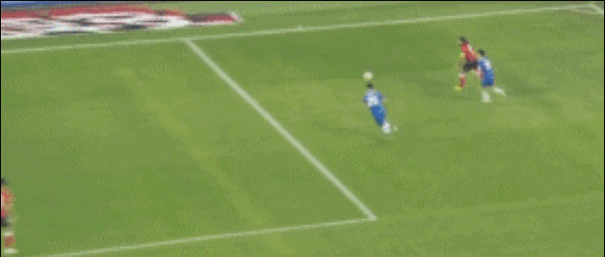 第75分钟,穆伊前场右侧的传中球给到门前,曾诚击球没能将球打远,奥斯卡杀到禁区右侧横穿给到禁区左侧的李圣龙,李圣龙门前一米位置的射门被姆比亚封堵,姆比亚立功了。