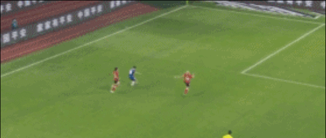 第14分钟,胡尔克前场右侧过掉温家宝,禁区右侧底线位置的倒三角给到傅欢,傅欢稍作调整后的射门偏出左侧立柱。