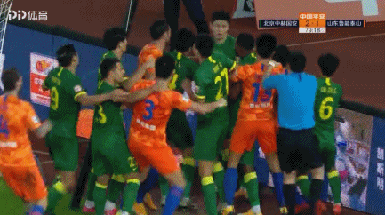 北京时间10月22日19时35分,2020赛季中超联赛第二阶段争冠组首轮北京中赫国安与山东鲁能泰山队的次回合比赛在苏州市体育中心进行。第80分钟,鲁能主罚角球到门前,费莱尼抢点时踢到了侯森的胳膊上,于洋冲过去推搡费莱尼引发双方冲突,鲁能替补席球员也是瞬间冲过去,刘军帅和于洋发生冲突,但双方很快散去,比赛继续。于洋和刘军帅各自吃到黄牌。