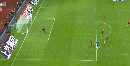 第48分钟,申花打出犀利的反击,毕津浩拿球内切到禁区前左侧线上起右脚打门,皮球被贺惯的小腿蹭了一下后击中了横梁和右侧立柱的结合部出了底线。