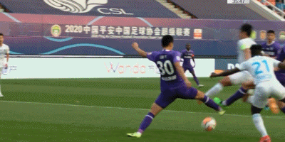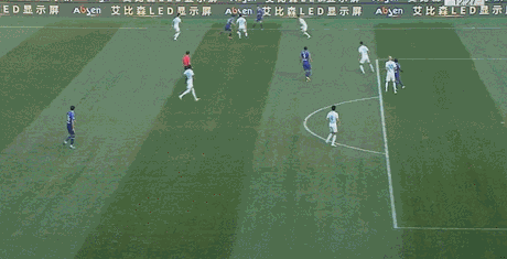 第9分钟,拉尔森中线左侧回传失误,阿奇姆彭断球后推进至弧顶前沿左脚抽射,张翀奋勇将球托出横梁。