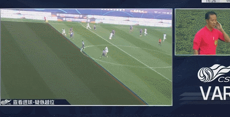 第35分钟,天津泰达后卫刘洋禁区内手球,但主裁判和VAR助理裁判均未判罚。
