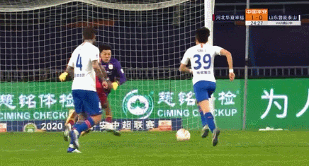 第4分钟,山东鲁能前场右路送出精准的过顶长传,格德斯利用速度插上形成单刀球,杀入禁区后在张俊哲的紧逼下面对门将打门,鲍亚雄将球封出。