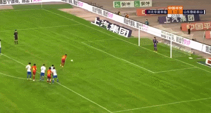 第43分钟,格德斯前场右侧断球,段刘愚接应后再传给格德斯,后者杀入禁区右侧底线附近被潘喜明铲倒,主裁果断判罚点球,格德斯第45分钟主罚点球打向球门左侧死角,鲍亚雄虽然判断对方向,无奈角度过于刁钻,鲁能1-2扳回一球。