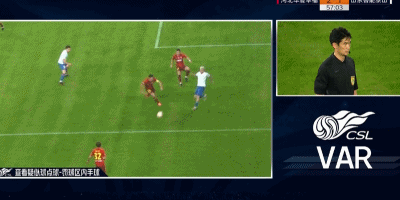 第56分钟,任航禁区内疑似手球,主裁判艾堃在VAR的提示下没有判罚手球。