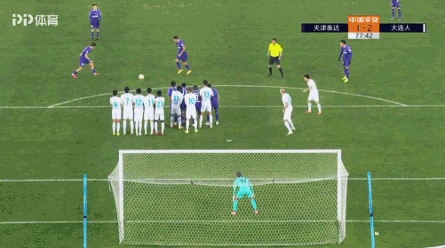 第76分钟,赵旭日本方弧顶前沿铲倒刘若钒,泰达获得距离球门21米处任意球。2分钟后,宋岳主罚直接射门,球划出一道美丽的弧线直飞右侧死角。泰达扳回一分,1-2,总比分3-2领先!
