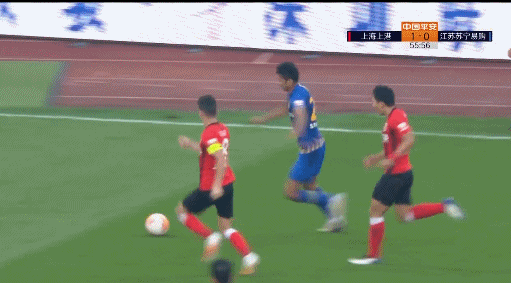 第54分钟,阿不都海米提右路下底,张卫与奥斯卡夹击防守,奥斯卡、阿不都海米提在拼抢中相互倒地,阿不都海米提在爬起身来右脚脚底故意踩踏倒在地上的奥斯卡的背部。主裁判郭宝龙亲自查看VAR回放,在第57分钟时向海米提出示红牌,苏宁10打11!