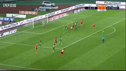 19时35分,2020赛季中超联赛第19轮上港对阵国安的比赛即将开战。第73分钟,买提江前场左侧传中给到禁区,乱战后,皮球第二点来到禁区左侧,贺惯迎球就是一脚近距离抽射,只可惜皮球打了飞机,错失绝好机会。