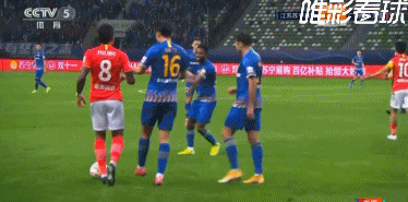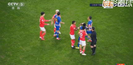 第20分钟,双方爆发冲突,韦世豪掐苏宁队员高天意脖子,韦世豪吃到一张黄牌。