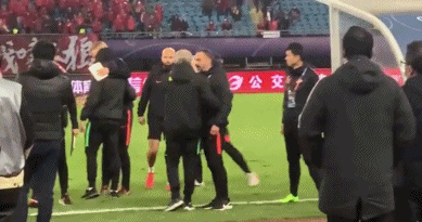 上港教练组只好又离开了场地,并和国安教练组进行了寒暄。不过即使离开了场地,上港队主帅佩雷拉也难掩自己的愤怒,冲着裁判团队方向挥舞着自己的双臂表达着不满。裁判团队也在安保的保护下迅速离开了球场。