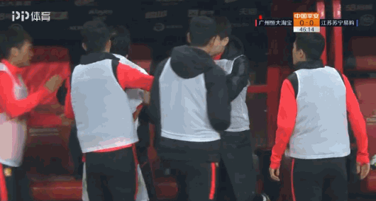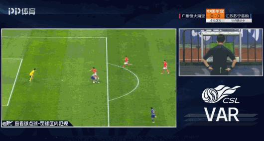 经过VAR回放,主裁判高亨进向何超出示了红牌,恒大10打11,但判给苏宁任意球。