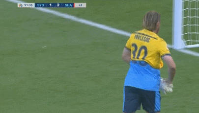 今天晚上,上港对阵悉尼的比赛最后阶段,面对上港门将陈威开出的大脚,悉尼FC门将休厄德-贝尔迷惑操作出击至禁区外,面对弹地球做出排球拦网动作被红牌罚下,场面相当滑稽。