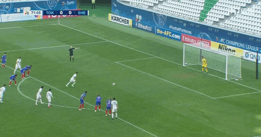 第70分钟,姆比亚中场右侧任意球大脚传入禁区,毕津浩前点力压森重真人争顶没有顶到,后点于汉超被中村帆高拉倒,约旦籍主裁判马哈德迈判罚点球。2分钟后,于汉超亲自主罚点球低射球门左下角得分。于汉超打入本届亚冠第2球,申花1-0领先!