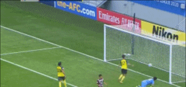 第33分钟,塔利斯卡右肋任意球射门被人墙挡出,随后弧顶右侧再射又被渡部博文封堵,朴志洙弧顶内凌空撩射没有打上力量,饭仓大树将球没收。