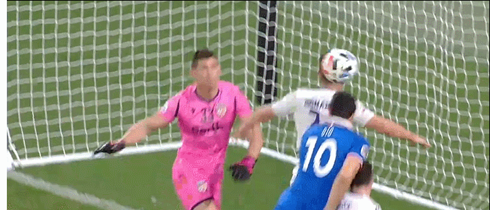 95分钟,曹赟定换边右路传中,于汉超中路高高跃起头球攻门,门将做出精彩扑救将球扑出。
