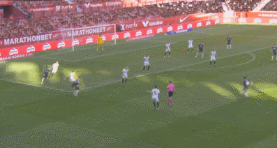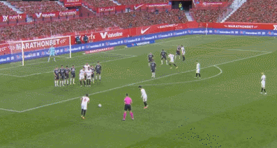 第75分钟,塞维利亚大禁区前左侧获得一个位置不错的定位球,古德利开出的任意球穿过人墙后偏出球门出了底线。