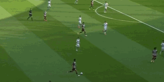 从上图可以看到,神户将球转移到右路,这时候,奥斯卡来到边路进行协防。后腰上的买提江第一时间转头观察小白的走位,然后拉近距离防止神户球员的横传。而且,在5秒钟的时间里一共完成了3次转头观察。最终,神户的右侧进攻没有很好的机会将球交给小白,最终只能回传。
