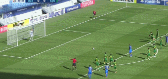 第16分钟,元斗载右路下底传中,儒尼奥尔小禁区前沿侧身倒钩射门,球打碰到金玟哉的的右手上高出横梁。经过VAR反复回放,哈桑判罚点球。5分钟后,儒尼奥尔亲自主罚点球,推射球门右侧得手。儒尼奥尔打入本届亚冠第3球,国安0-1落后!