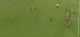 图1:亚冠联赛里,金玟哉指挥队友在定位球中站位