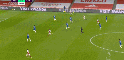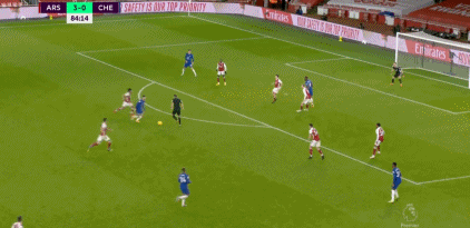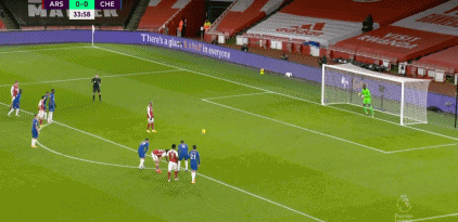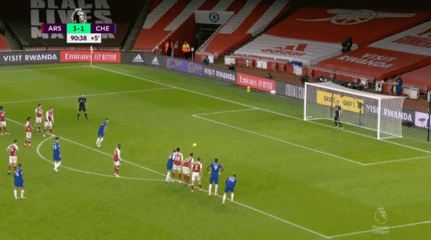 第44分钟,阿森纳的任意球机会,扎卡主罚射门直挂网窝死角,阿森纳2-0切尔西!