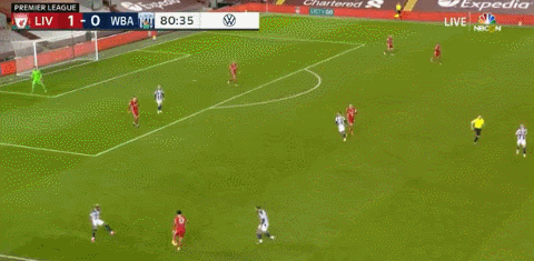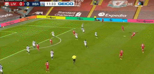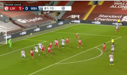 通常情况下,压缩到极致的大巴总会给利物浦的进攻带来困难,但西布朗这套大巴战术显然象征意义大于实战意义,甚至还适时的露出了个破绽——第11分钟,西布朗中卫突然主动失位,然后马向前传给马停大一个恰好能让他停大的传球,帮助他趟过对手,破门得分。