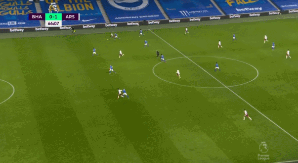 第72分钟,蒂尔尼传球,萨卡禁区里推射被挡出。第87分钟,普罗佩尔禁区外远射被挡出。全场比赛结束,阿森纳1-0战胜布莱顿。
