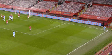 下半场开始,第48分钟,费尔南迪尼奥对博格巴犯规领到黄牌。第50分钟,福登主罚左路任意球吊入禁区,斯通斯6码处用大腿把球挡入球门。曼联认为有曼城球员越位,VAR检查后进球有效,曼城1-0领先。