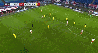 第84分钟,罗伊斯直塞,哈兰德前插,右脚停下球后横向一拨,趟过古拉斯奇,把球推进网,多特3-0。第90分钟,安赫利尼奥左路传中,索尔洛特后点跟进头球射门被挡,他自己补射破门给莱比锡打入挽回颜面的一球,莱比锡1-3。多特最终客场3-1战胜莱比锡。