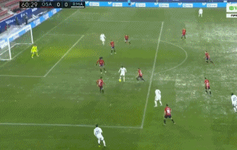 第32分钟,莫德里奇在禁区左侧似传似射被门将埃雷拉扑出,莫德里奇再次拿球射门被阿里达内挡出。第35分钟,莫德里奇挑传到禁区后点,本泽马没能顶到球。第37分钟,阿森西奥将球传入禁区,门将抢先将球抱住。第40分钟,奥萨苏纳右路传中,拉莫斯抢先出脚解围。第41分钟,莫德里奇直塞,大卫-加西亚抢在门迪之前倒地铲球解围。第45分钟,皇马开出右侧战术角球,克罗斯传中,门将埃雷拉双拳将球击出禁区。上半场结束,皇马暂时客场0-0平奥萨苏纳。