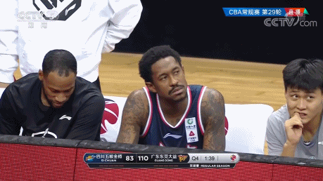 1月13日,常规赛第29轮,广东队114-88大胜四川队。比赛临近结束前,广东替补席上发生了有趣一幕:赵睿效仿马尚-布鲁克斯的经典动作,开始啃自己的手指。