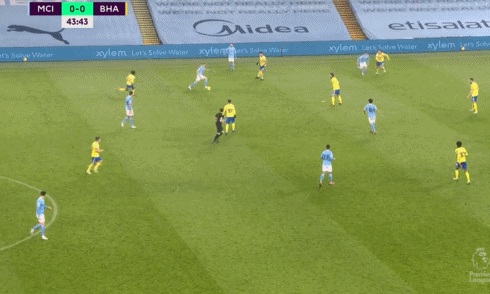 第44分钟,场上僵局终于被打破,德布劳内前场左侧斜传,福登禁区左侧得球内切右脚低射破门,曼城领先,1-0!半场战罢,曼城1-0暂时领先布莱顿。