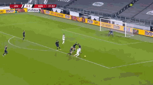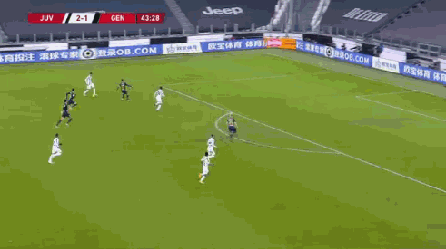 第23分钟,库卢塞夫斯基前场中路背身拿球,不停球给到右侧插上的莫拉塔,后者得到一次单刀机会,禁区内左侧面对门将推射得分,尤文2-0热那亚。